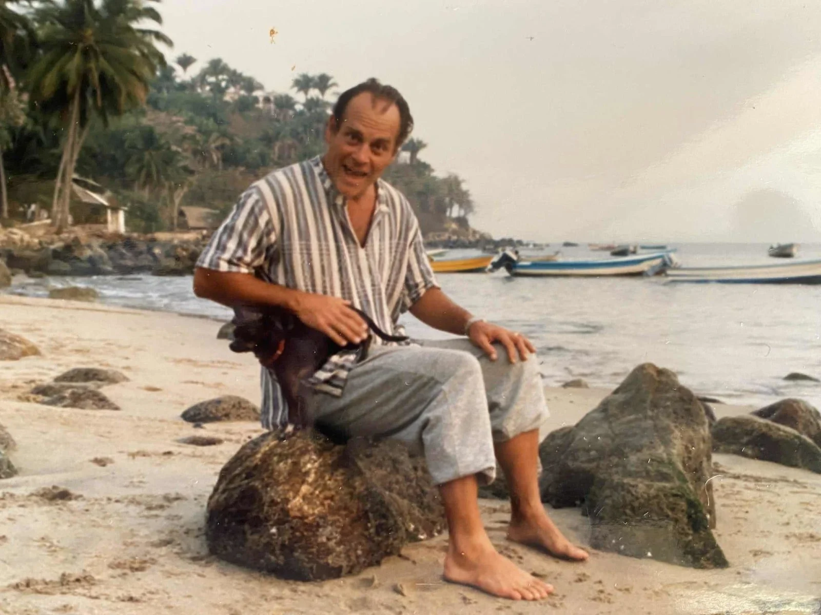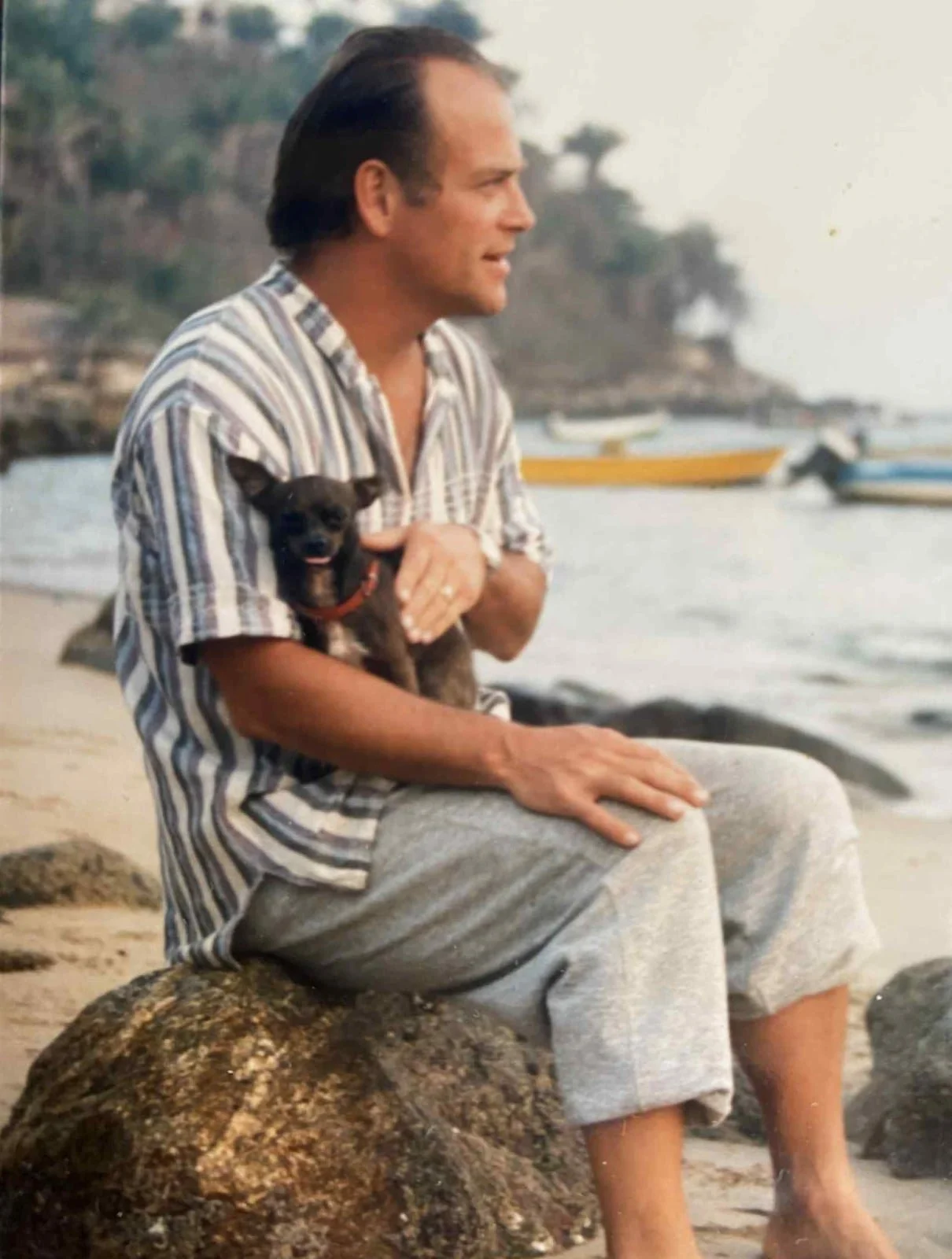 Nall and one of his beloved Chihuahuas on a beach in Yelapa, Mexico (Photo courtesy of Claudia Lake)